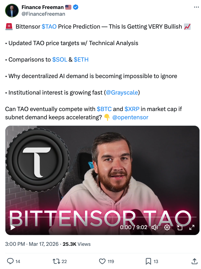 受英伟达CEO黄仁勋在All-In播客中与Chamath Palihapitiya的对话推动,Bittensor(TAO)的价格预测本周在X平台上引发关注。