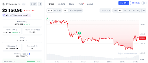 根据CoinMarketCap数据,以太坊维持在2,156美元,市值达2330亿美元。现货ETF虽带来机构资金,但ETH已从4,800美元高位回落,即使重返4,000美元也仅能实现约2倍收益。