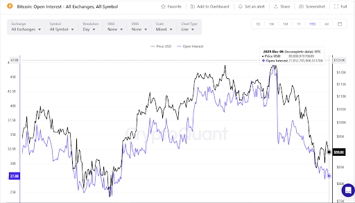 当前数据显示比特币价格下跌与未平仓合约减少同步发生。这种组合表明市场正在平仓期货头寸,而非启动大规模现货抛售。随着杠杆水平降低,波动性可能加剧,但底层需求依然稳固。