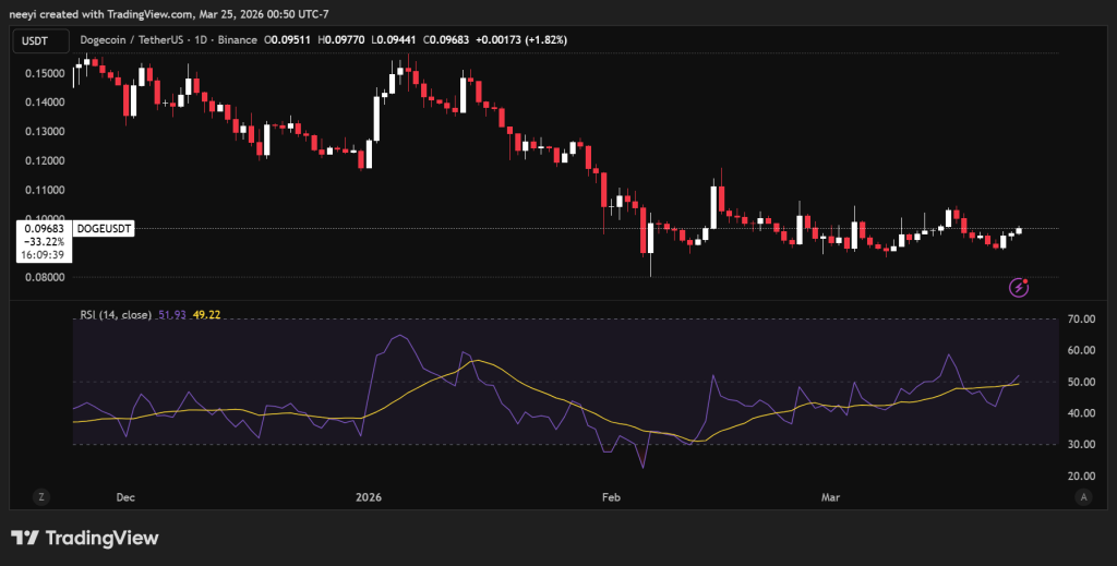 狗狗币价格预测:若0.0957美元转为支撑,有望上探0.10美元