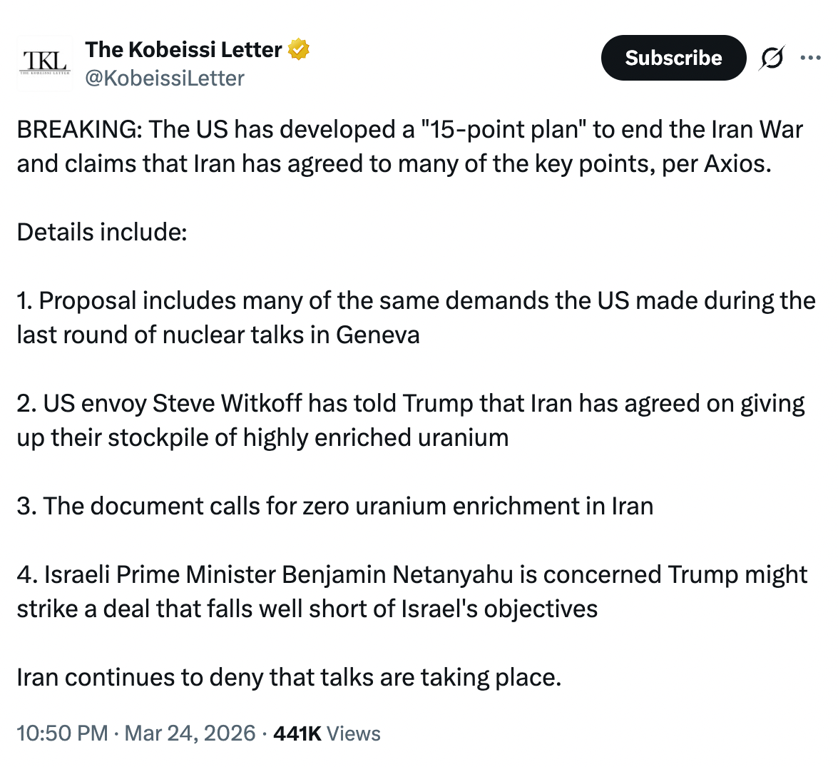 价格波动源于消息面:美国通过主要中间人——巴基斯坦陆军参谋长赛义德·阿西姆·穆尼尔上将——向伊朗递交了旨在结束战争的15点计划。该计划核心内容包括:呼吁伊朗在临时停火期间拆除或严格限制其核计划、暂停弹道导弹研发工作,并全面重新开放霍尔木兹海峡以确保海上交通安全。