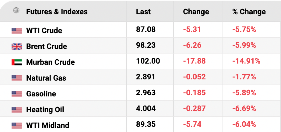 与此同时,伊朗继续否认正在进行任何谈判,而特朗普推迟了其设定的要求德黑兰重新开放霍尔木兹海峡的最后期限。消息发布后,WTI原油下跌5.75%至每桶87美元,布伦特原油下跌6%至98美元。