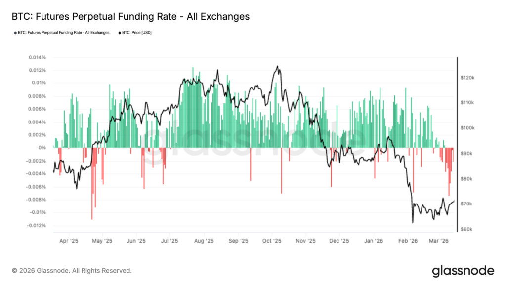 资金费率转负反映市场情绪转弱