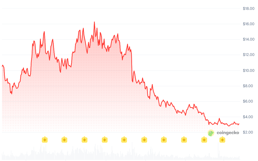Render Network是AI计算热潮中最清晰的基础设施标的。该协议连接GPU所有者与需要AI推理、3D动画和机器学习算力的创作者及开发者,本质上是云计算巨头的去中心化替代方案。随着AI模型训练和推理需求持续攀升,分布式GPU市场的优势日益凸显。