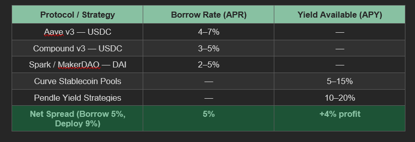以约3%借入,部署到更高收益的策略(约12–18%)。→ 净收益:可达+10%甚至更高。这些机会不会永远持续,但它们表明,只要你保持关注,就有可能实现。