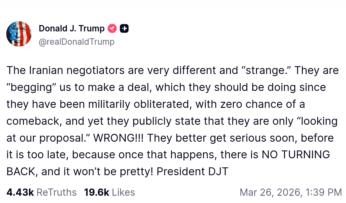 据报道,美国总统特朗普在真相社交平台发文指责伊朗谈判代表“非常不同且‘古怪’”。