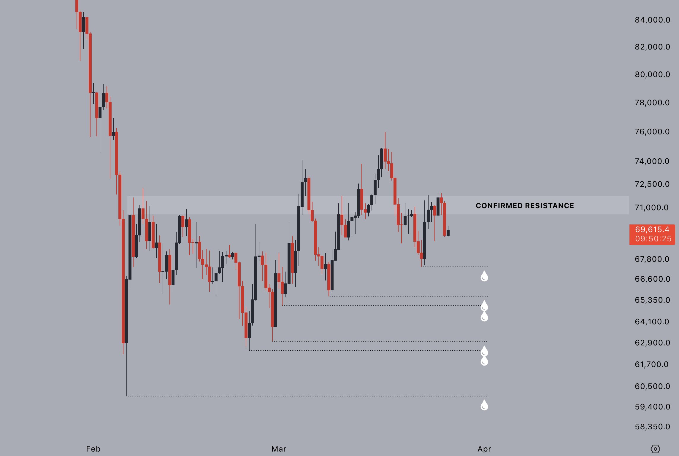 交易员Jelle此前一天在X(前推特)的分析中写道:“70,000-71,000美元区域再次被确认为阻力位。下方仍积聚了大量流动性,这通常不是市场底部的特征。预计这些流动性迟早会被扫除。”