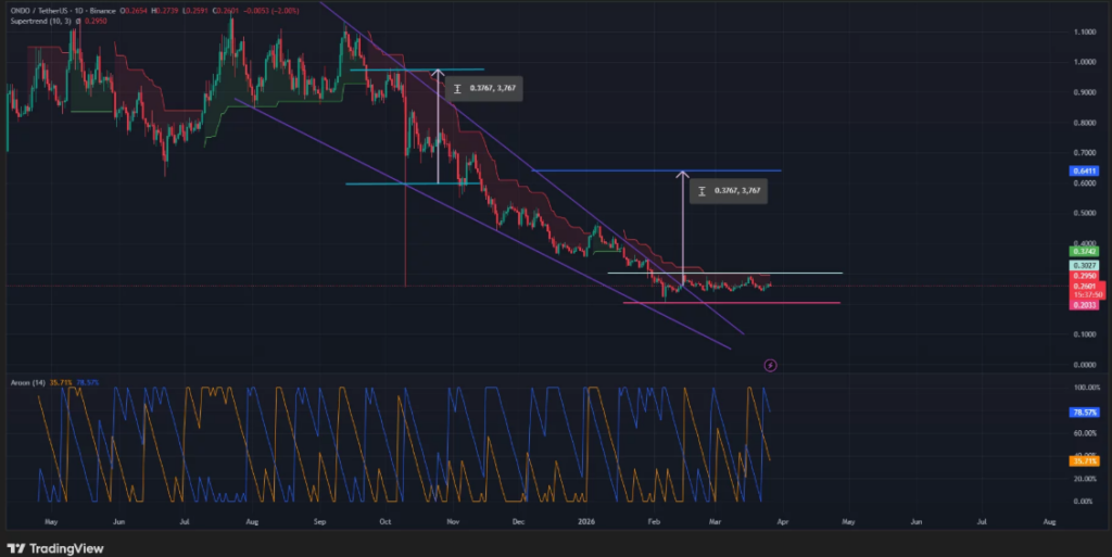 在确认与富兰克林邓普顿合作在区块链网络上引入代币化交易所交易基金后,Ondo 录得价格大幅上涨。该代币涨幅约百分之八,一度攀升至接近0.27美元的周内高点,随后小幅回落至0.26美元。除了即刻的价格反应,此次公告还使人们的注意力转向传统金融公司如何深化区块链整合。