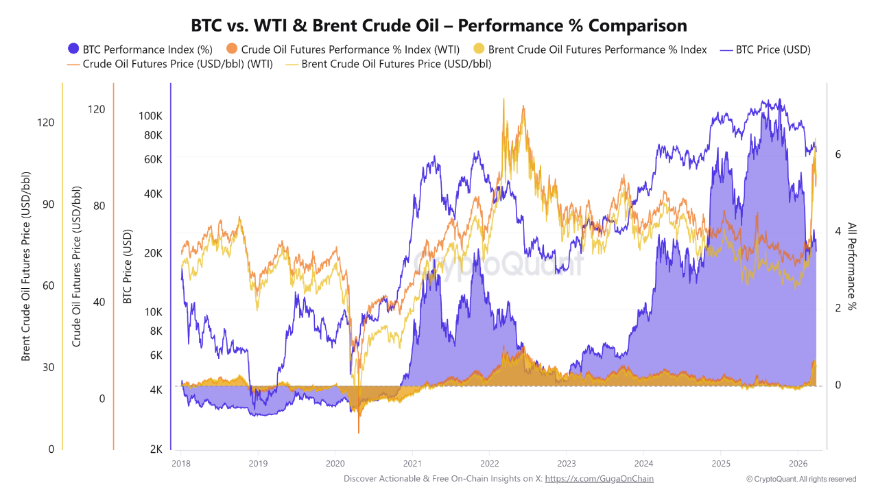 1973年的石油危机因供应链中断蔓延至全球经济,几乎重新定价了所有资产类别。当前的能源冲击在结构上具有相似的印记,关键航运通道的实体物流面临封锁级风险。与石油不同,比特币的流动无需船舶、管道或领土依赖。GugaOnChain将比特币描述为完全在实体封锁之外运作的流动性轨道。这种框架使该资产的定位不同于依赖地理基础设施进行结算和清算的大宗商品。当石油在咽喉要道冻结时,比特币结算仍以同样速度持续。