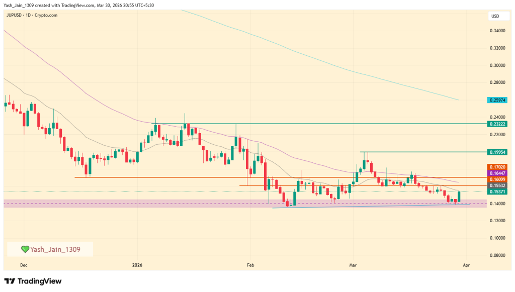 JUP价格在关键催化剂支撑下自关键支撑位反弹