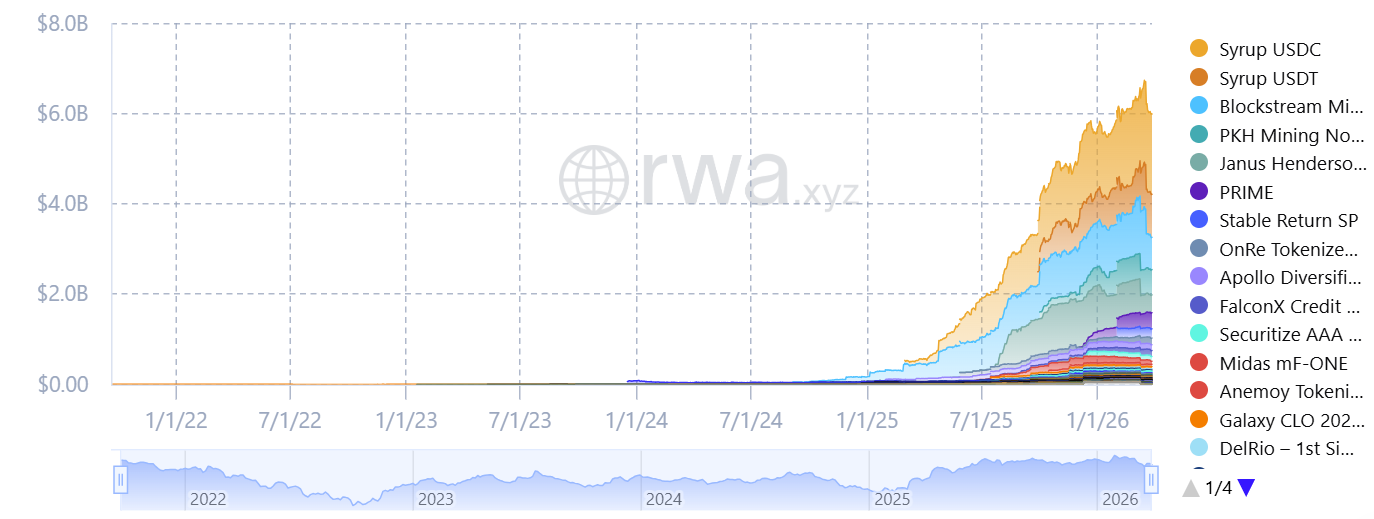 Kinexys 瞄准的是 60 亿美元的代币化信贷市场。资料来源:RWA.xyz