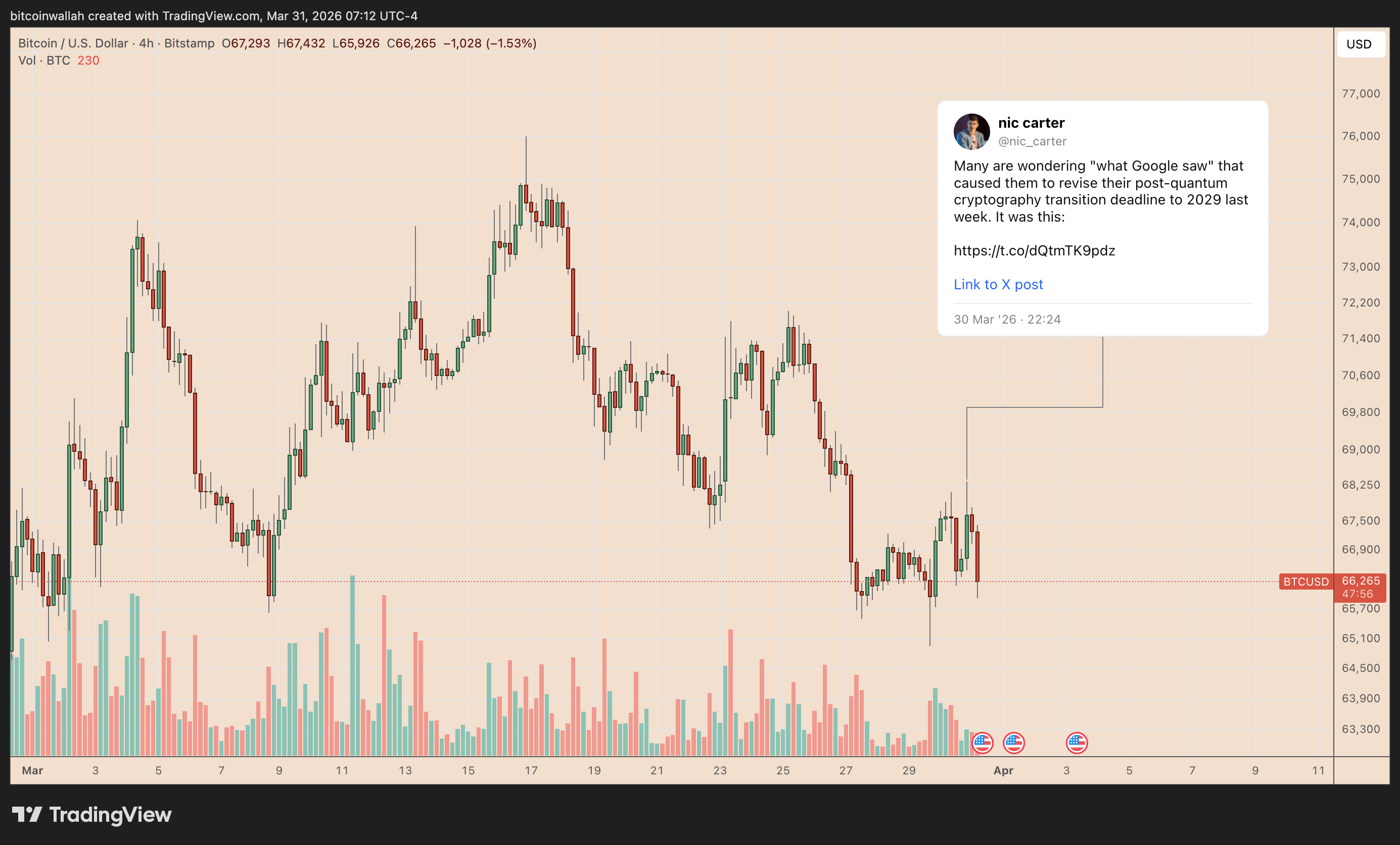 比特币价格在分析师Nic Carter周二广泛传播谷歌报告后停滞不前,随后下跌3.5%。