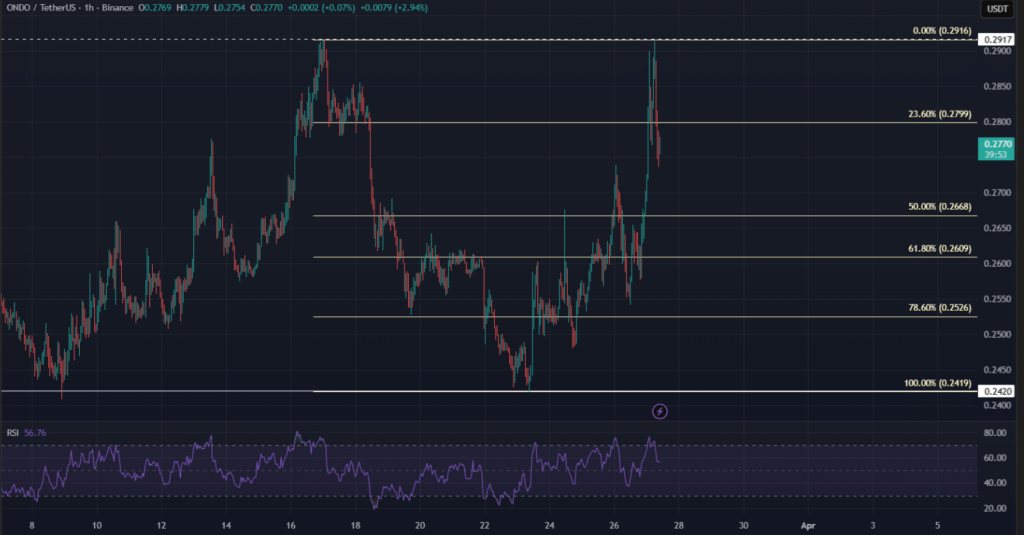 ONDO从0.242美元反弹后,交易于0.277美元附近,买家在此介入并吸收了强劲的卖压。因此,尽管市场整体犹豫,该代币重建了短期结构并显示出稳定的需求。