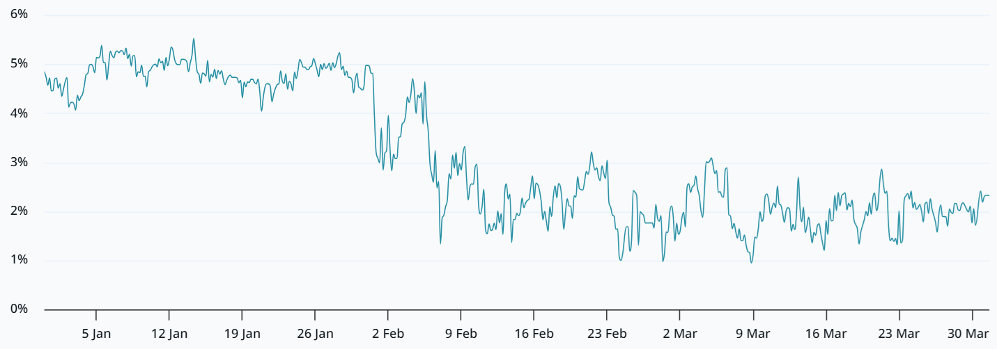 比特币衍生品市场看涨杠杆需求有限