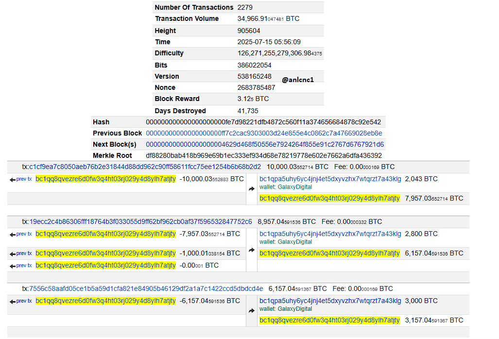 分析师anlcnc1披露,Galaxy Digital已开始分配比特币,部分转入新创建的钱包。值得注意的是,富达投资正通过Galaxy Digital为ETF积极购入比特币。历史数据显示,富达和贝莱德曾通过Coinbase收购德国政府抛售的比特币,暗示ETF可能正在吸收本次抛售的比特币。
