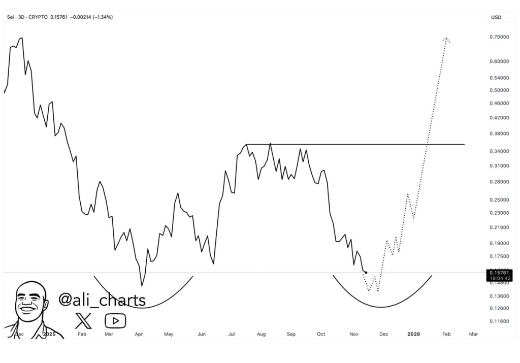 Sei($SEI)正显现形成双底形态的迹象,这往往预示着重大突破行情。这一技术形态引发市场关注,暗示该代币可能即将迎来高达400%的价格飙升。投资者和分析师正密切关注走势,以验证该形态是否会引发大规模上涨。