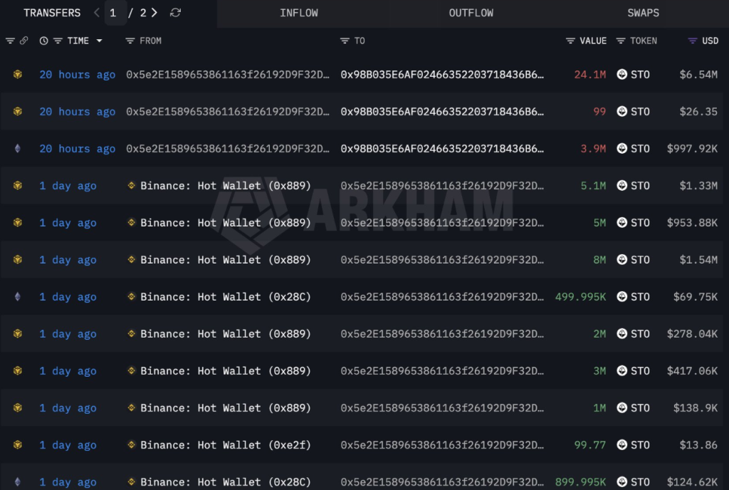 值得注意的是,有一个钱包从币安提取了超过1170万枚STO,显示出强烈的看涨布局意图。