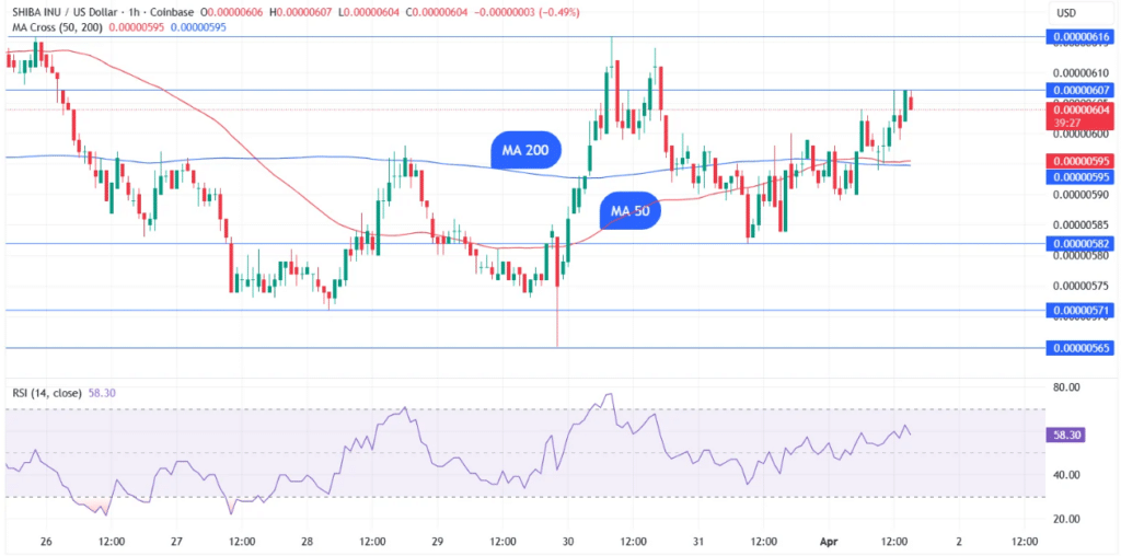 过去24小时内,Shiba Inu上涨约1.43%,交易于0.000006美元附近。此外,此次上涨是继多次试图守住3月初出现的同一阻力区后的结果。同时,价格涨幅显得克制,而非强势上攻。
