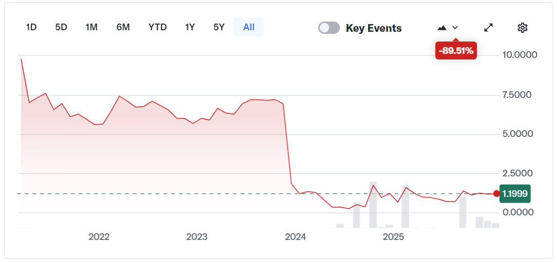 BitVentures的股价跌幅尤为显著。根据雅虎财经数据,该公司自上市以来的累计回报率约为负89%。
