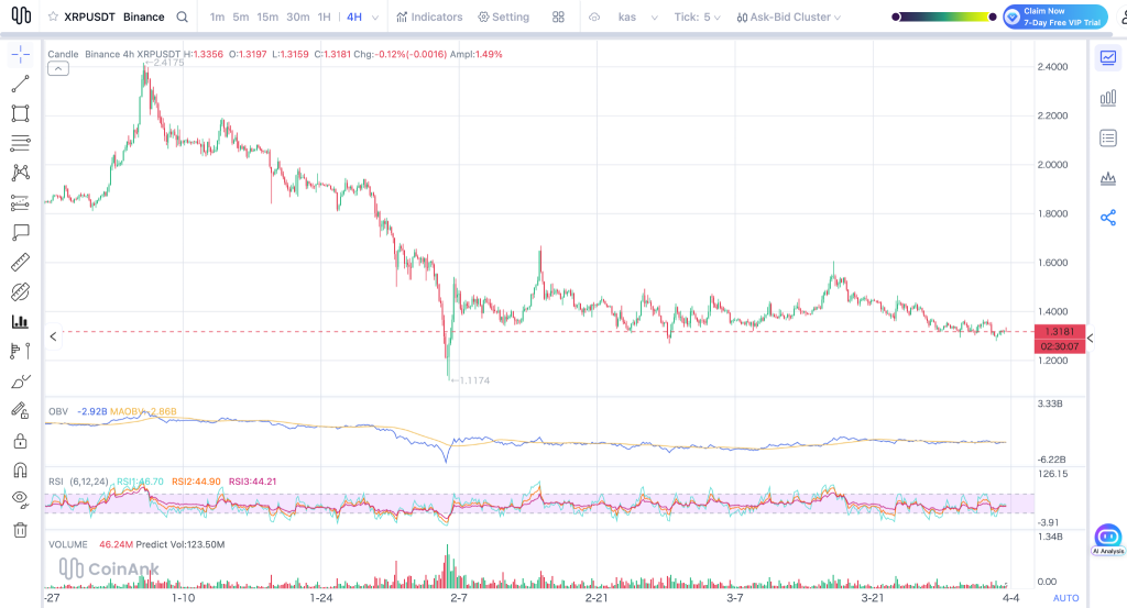在市场承压时期,XRP的反应往往更为剧烈,而当前状况已经显示出疲态。我们查看了XRP走势图,其在短时间内从约2.41美元跌至接近1.31美元,凸显了市场情绪转变之快。抛售压力占据主导,目前尚无强劲的吸筹迹象。