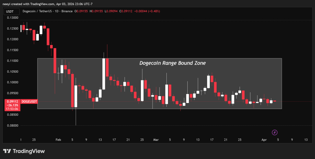 狗狗币目前正处于狭窄的价格区间内波动,然而大额持币者已开始积极动作,这可能决定其后续走势。数据显示,自3月31日以来,巨鲸地址已累计增持超过5亿枚DOGE。这一积累行为发生之际,狗狗币价格始终锁定在0.087美元至0.101美元之间,使得其时机显得格外引人注目。