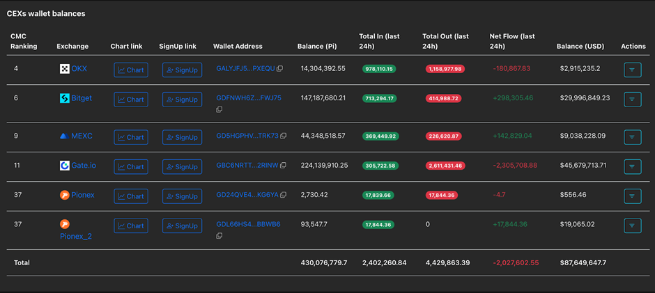 交易所资金流数据提供了第一个线索。过去24小时内,约有240万枚PI流入交易所。