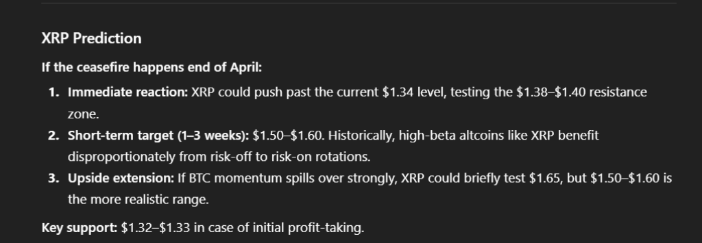 那么,若停火协议能在四月底前达成,XRP和比特币可能走向何方?以下是具体的预测分析。