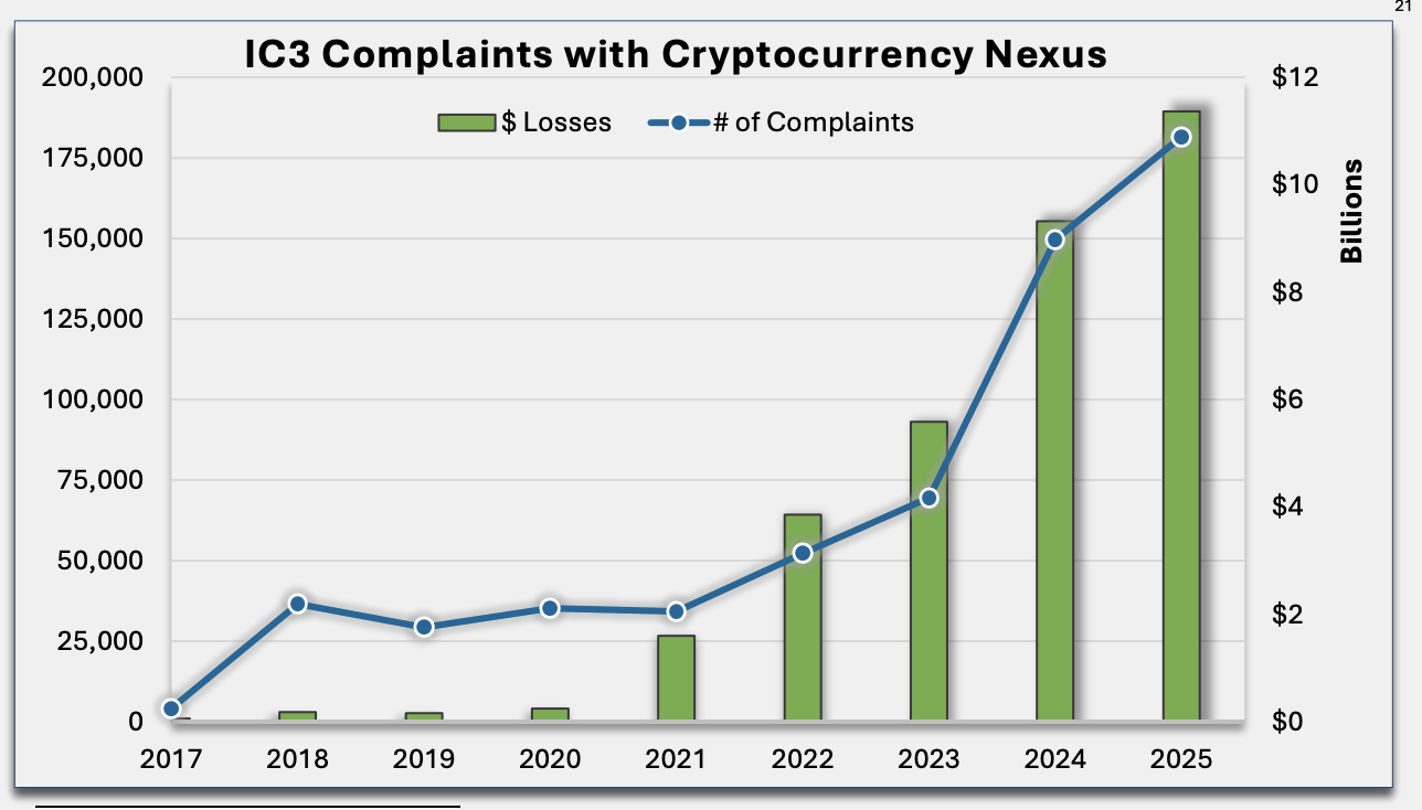 2025年美国加密货币诈骗损失达110亿美元 FBI报告