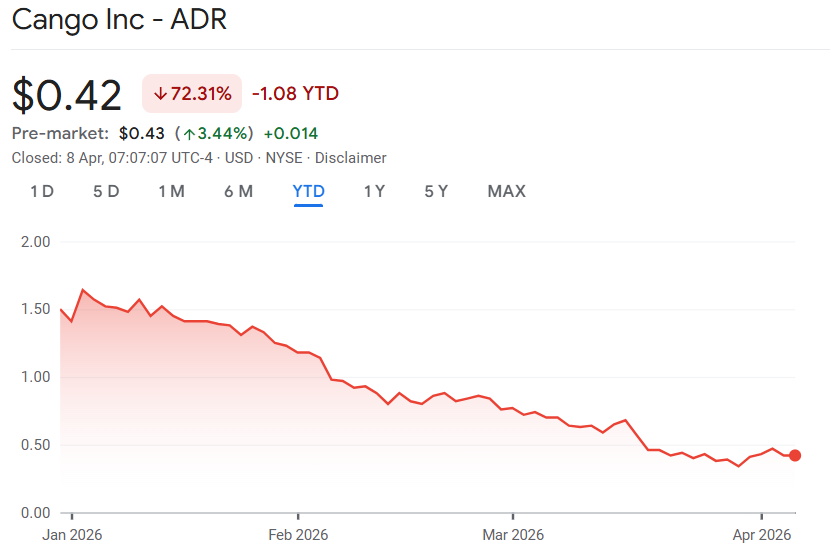 根据Google Finance的数据,Cango股价在周三的盘前交易中上涨了3.44%,但年内累计跌幅约为72%。