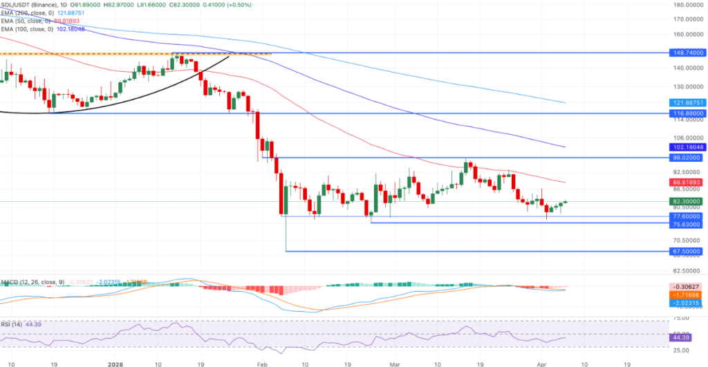 从技术角度来看,Solana仍处于决定其更广泛趋势的关键移动平均线下方。位于88.80美元附近的50日指数移动平均线构成近期阻力,并继续限制上涨。因此,需要持续突破该水平才能支撑价格向98至102美元的区间迈进。