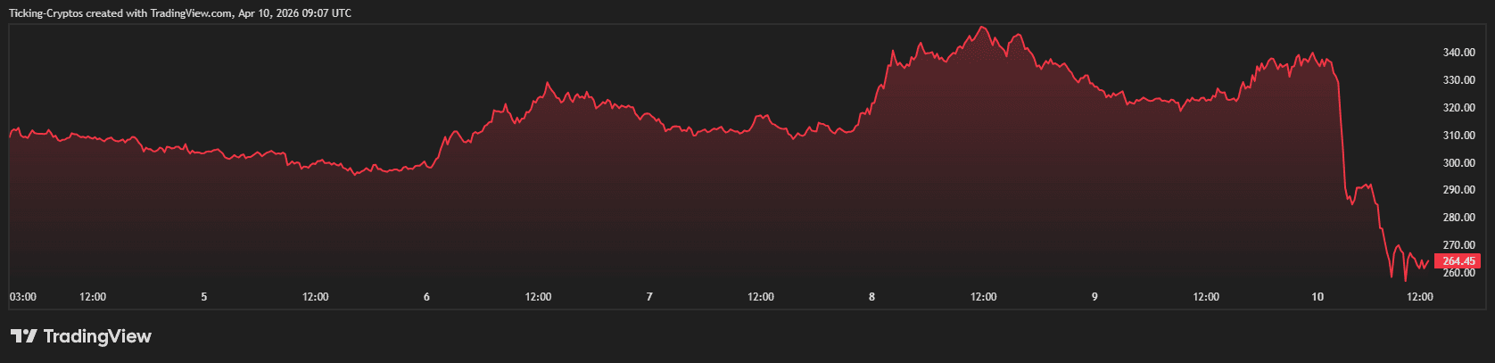 截至2026年4月10日,Bittensor(TAO)价格报263美元,24小时跌幅约19%。市场波动导致超900万美元TAO多头仓位被强平,此前Covenant AI抛售3.7万枚TAO(价值超千万美元)的消息引发连锁反应。