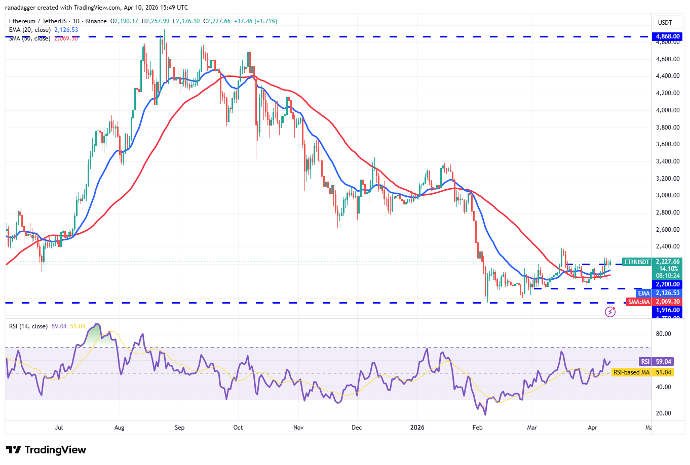 以太坊的回调正在 2,200 美元处获得支撑,这表明多头正试图将该水平转化为支撑。