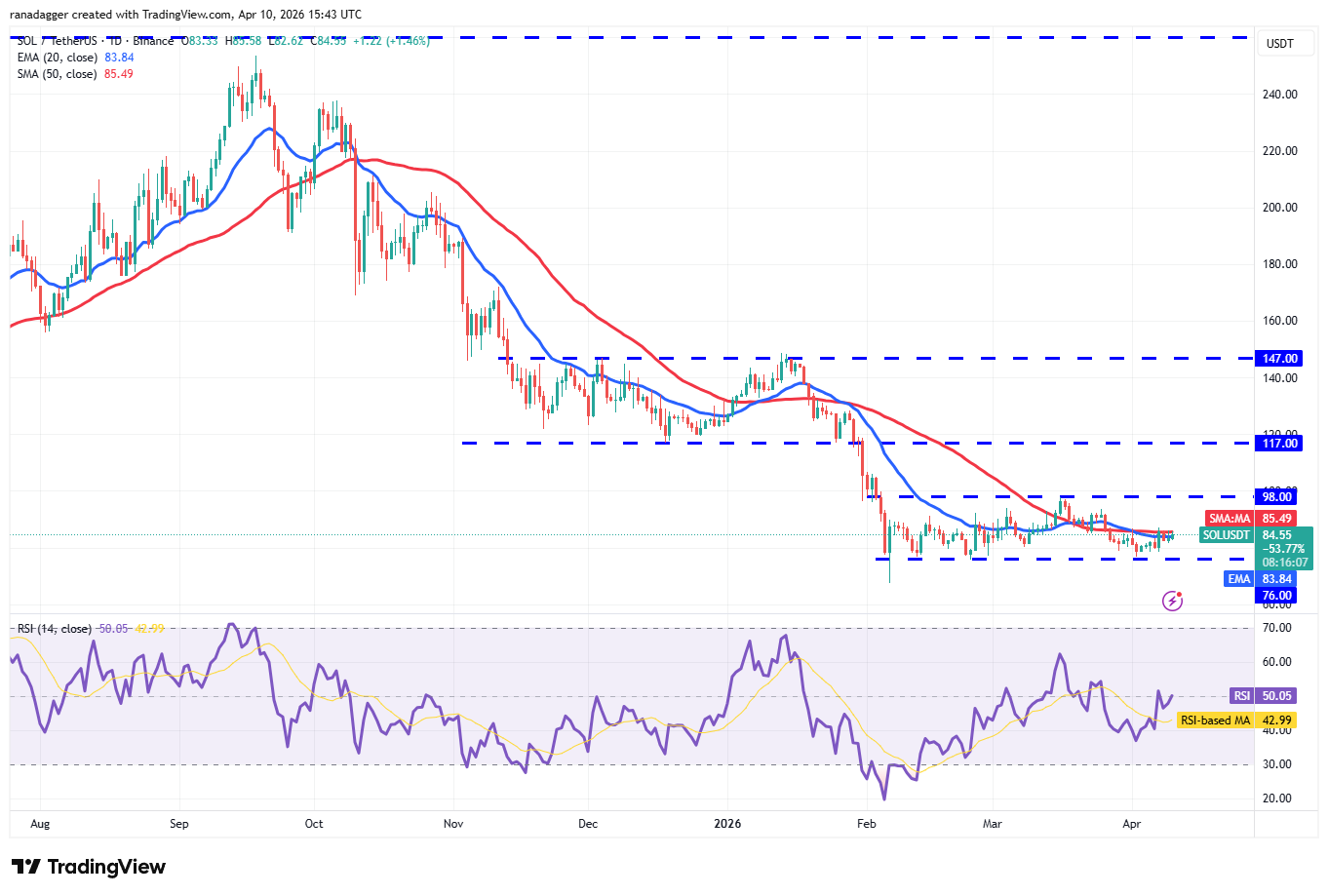 Solana 一直在 76 美元至 98 美元的区间内盘整,显示出逢低买入和逢高卖出的迹象。