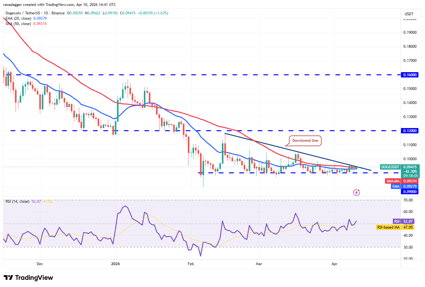 空头必须迅速将 DOGE 价格拉低至 0.09 美元支撑位以下,才能完成看跌的下降三角形形态。若成功,DOGE/USDT 交易对可能暴跌至 0.08 美元,随后是形态目标位 0.06 美元。