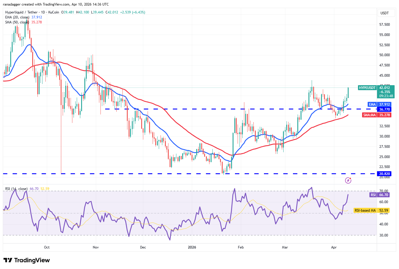 Hyperliquid 已逐渐向 41.59 美元至 43.76 美元阻力区域攀升,表明多头需求强劲。