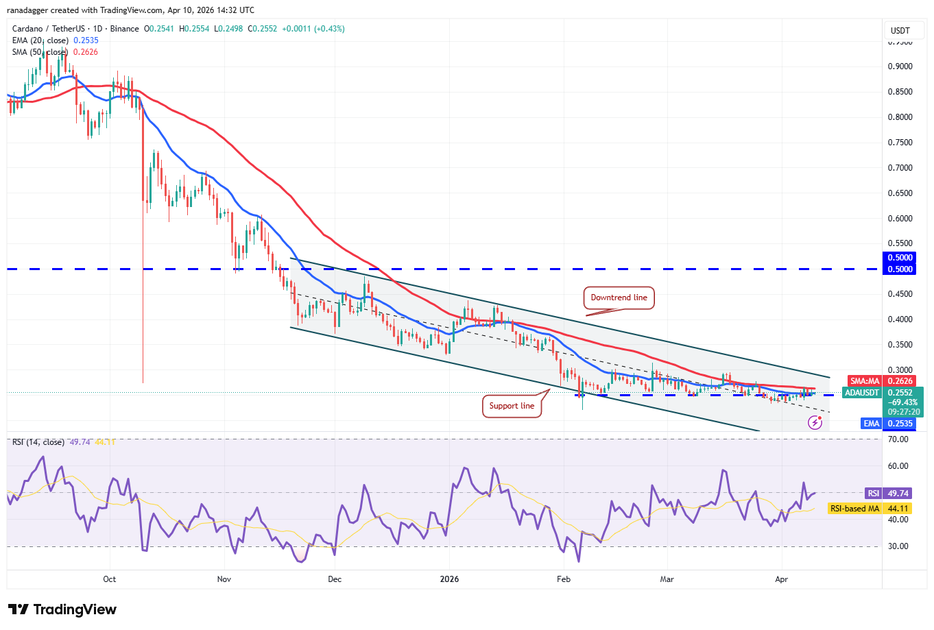 在 Cardano 中,空头正在防守 50 日简单移动平均线,但多头并未让价格跌回 0.25 美元支撑位下方。