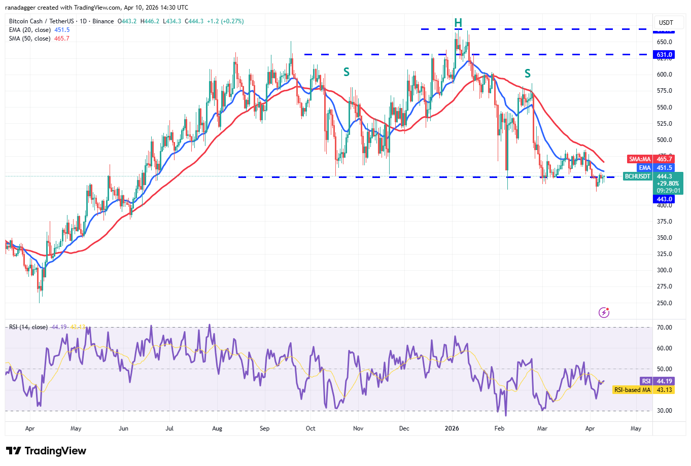 这增加了突破 20 日指数移动平均线的可能性。若如此,BCH/USDT 交易对可能攀升至 50 日简单移动平均线,随后是 486 美元阻力位。若收盘价高于 486 美元水平,则表明市场已否定跌破 443 美元支撑位的走势。