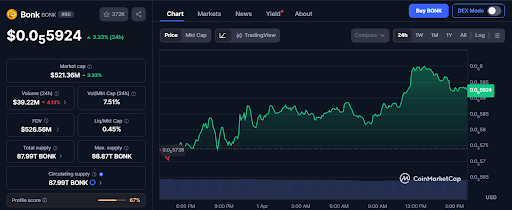 目前,邦克币的价格为0.000005924美元。其市值约为5.2136亿美元,过去24小时内的交易量约为3922万美元。过去一天,邦克币的价格上涨了约3.33%,其交易量则小幅下降了4.13%。