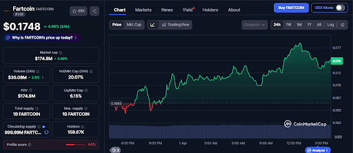 法特币的价格约为0.1748美元。其市值也较低,约为1.748亿美元,过去24小时内的交易量为3508万美元。法特币的价值上涨了4.98%,其交易量也增长了2.9%。