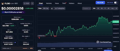 目前,弗洛基代币的交易价格为0.00002816美元,总市值接近2.6865亿美元,过去24小时内的交易量为2378万美元。在过去24小时内,该代币的价值上涨了3.05%,而交易量则增长了16.56%。