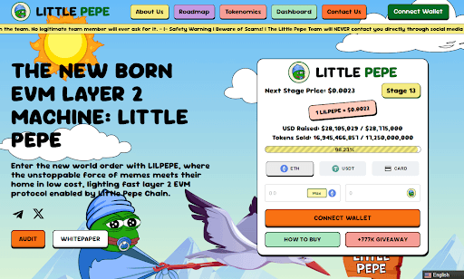 小佩佩币(LILPEPE)无疑正在成为高性价比加密货币列表中一股不可忽视的力量,尤其是其预售刚刚开始早期阶段。该加密货币的定价为0.0022美元,目前已筹集超过2800万美元,而第13阶段即将结束,承诺涨价的第14阶段即将到来。该加密货币的最大优势在于采用了新的第二层技术,这使得用户可以享受以太坊网络的益处,在享受快速交易的同时支付更低的手续费。此外,该加密货币实行零税交易,提供狙击机器人防护、质押功能、模因启动板和去中心化自治组织,这些特点使其与其他模因币区分开来。它的设计结构严谨,旨在下一代模因加密货币世界中开辟出一片天地。该代币还为社区提供了丰厚的赠品和奖励,以促进其扩展并参与预售。
