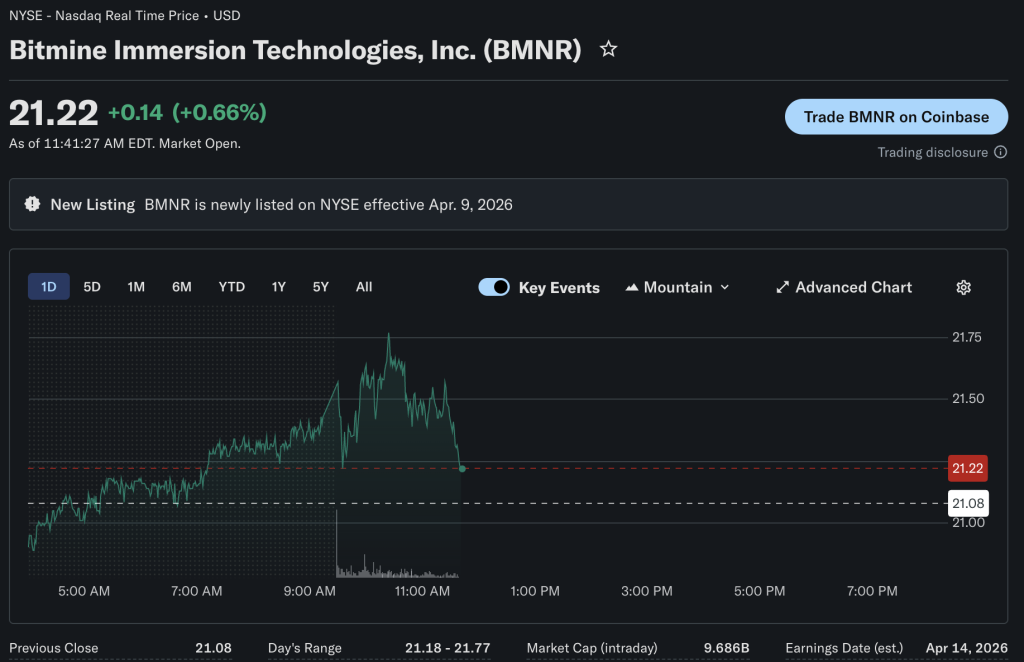 在NYSE American的交易于4月8日结束,在Bitmine满足了交易所有关财务健康、股权分布和治理的标准后,BMNR股票于4月9日开始在纽交所交易。这些标准包括拥有超过400名股东以及至少110万股公开流通股。