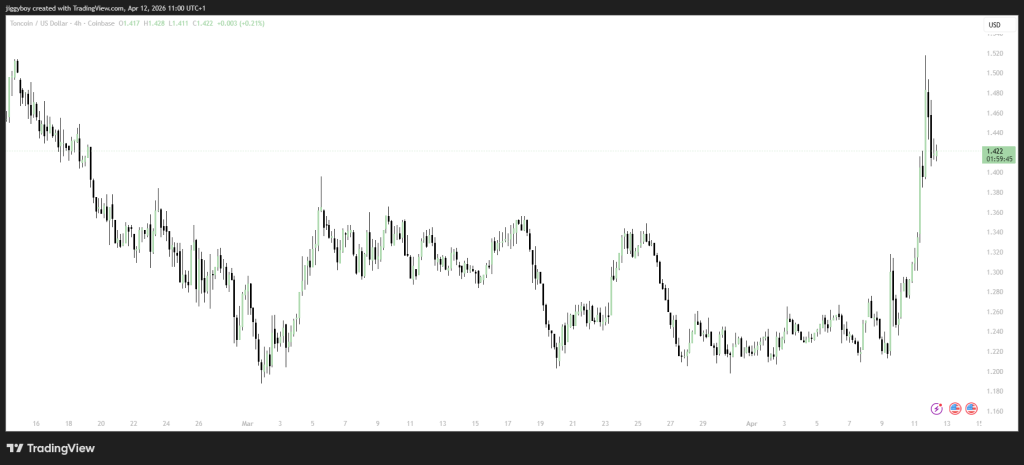 Toncoin现报1.42美元,过去24小时上涨5.6%,显示买家活跃。其市值为35.3亿美元,仍只占市场一小部分。