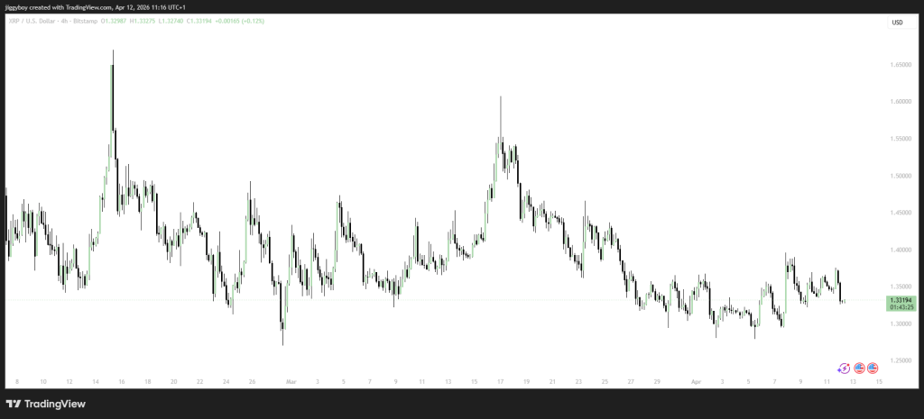 XRP价格持续在1.30-1.50美元的盘整区间内移动,这反映了该资产当前的表现特征。目前价格交易于1.33美元上方,近期的价格形态可能预示着将测试上述盘整区间的下沿。