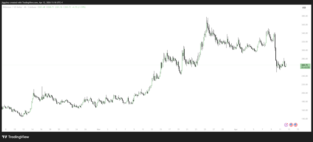 Bittensor现报266.25美元,过去24小时小幅上涨1.33%,显示买家虽有介入但热情不高。市值为28.8亿美元,市场占比为0.12%,确认TAO相比主要加密货币仍属较小资产。