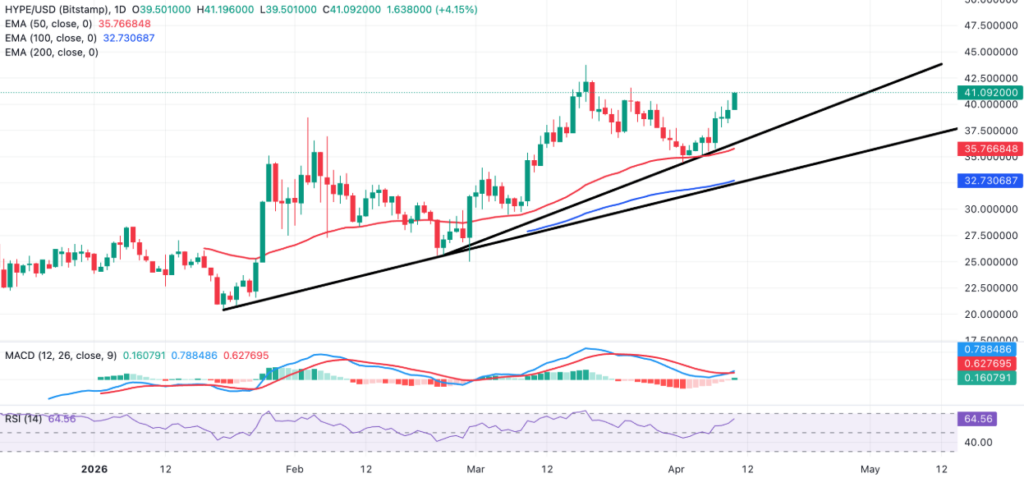 随着期货未平仓合约增加且衍生品市场活动中零售需求保持稳定,Hyperliquid在41美元上方维持上涨动能。