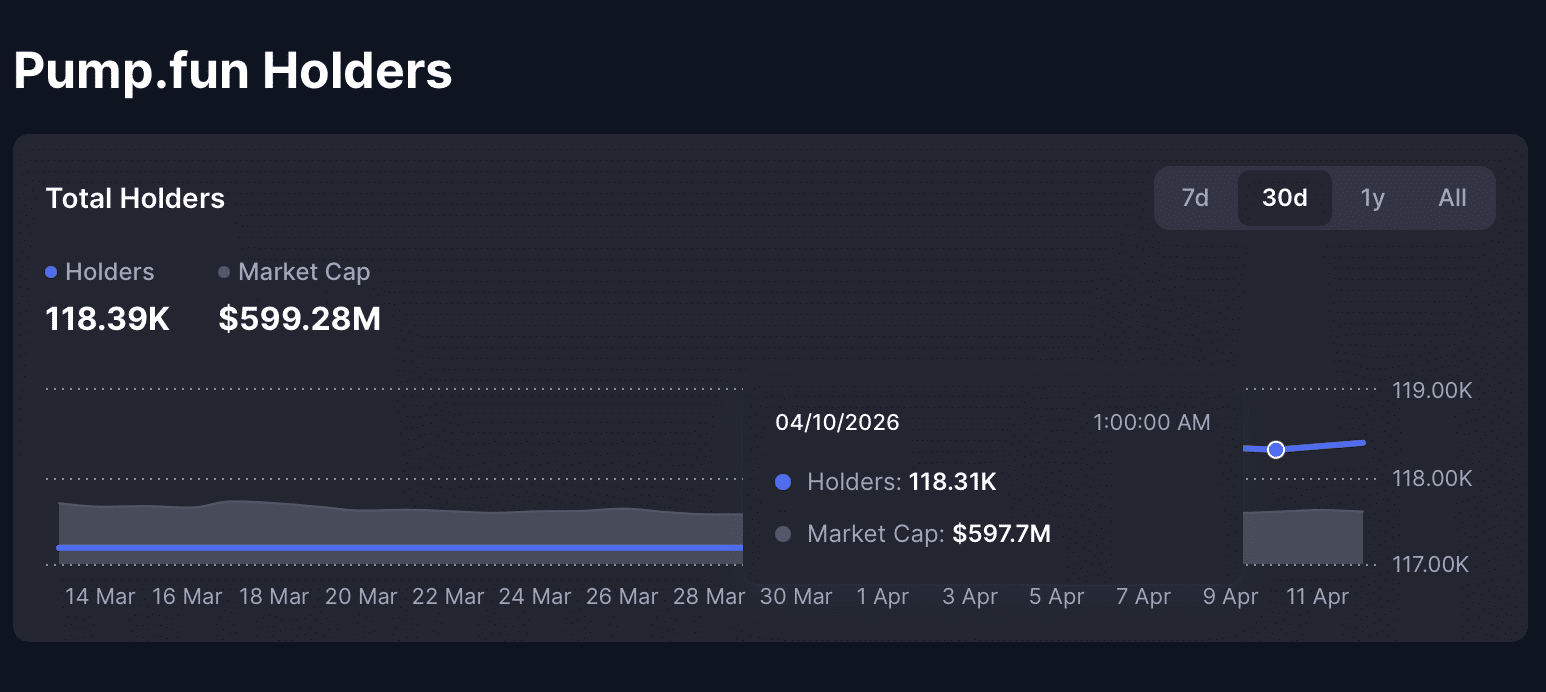 链上指标强化了这种看涨前景。PUMP持有者数量增加80人,总数达118,390人。尽管个人投资规模可能不同,但钱包数量的逐步增长表明投资者正在进行长期积累,而非在解锁前大规模抛售。