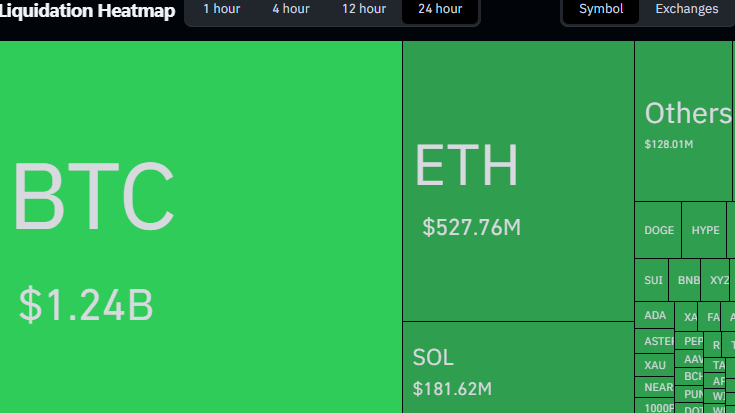 强制平仓规模为当前山寨币暴跌提供了更清晰的注脚。衍生品数据显示,过去24小时全网爆仓金额突破25.9亿美元,创近月单日最大清算规模之一。比特币以13.4亿美元领跌,反映价格跌破67000美元后引发的链式反应;以太坊随后遭遇5.62亿美元清算,山寨币整体清算额则超11亿美元。仅Solana便产生近1.87亿美元爆仓,其余清算分布在波动率较高的 Layer-1 协议、DeFi 代币及投机性中市值币种。