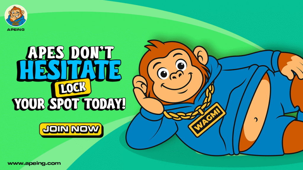 市场奖励决断力。历史表明犹豫很少带来超额回报。当Doge与Floki面临抛压时,注意力自然转向早期参与叙事。Apeing无需等待许可,它在市场重整之际率先行动。其0.0001美元入场结构、限额分配与成长中的社区,使其稳居本月最佳模因币白名单讨论核心。