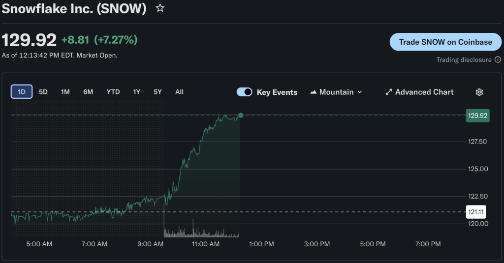 截至2026年4月中旬,Snowflake (SNOW)交易价格接近130美元,市值约440亿美元,52周价格区间为107.13至240美元。